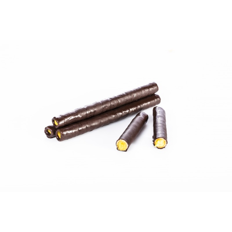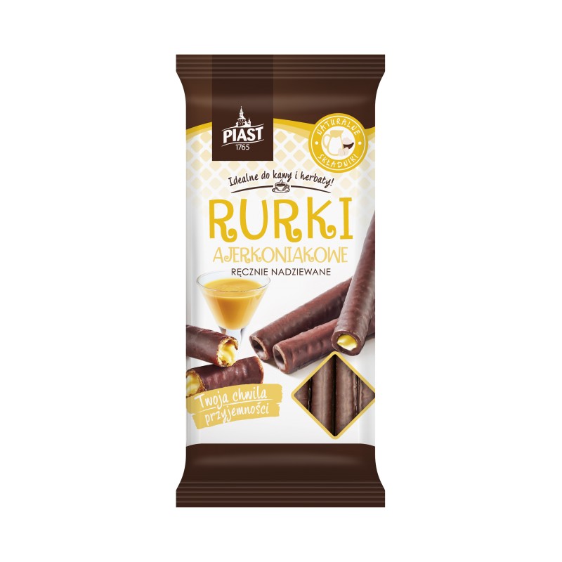 Przepyszna rurka, delikatna, rozpływająca się w ustach z nadzieniem ajerkoniakowym, oblana ciemną polewą czekoladową. Idealna do kawy, herbaty czy jako wyśmienity dodatek do lodów i deserów.