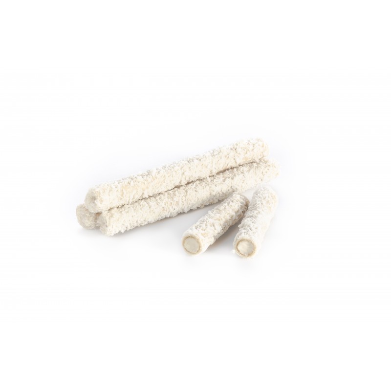 Rurki kokosowe ręcznie nadziewane 175g. Chrupiący wafelek wypełniony kremowym nadzieniem kokosowym. Produkt rękodzielniczy najwyższej jakości.